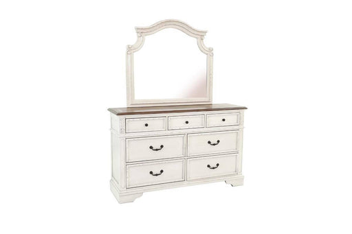 Take serenity home with this dresser from the Castile collection. Topped with beautiful crown molding details, the bold panel drawers are window pa...