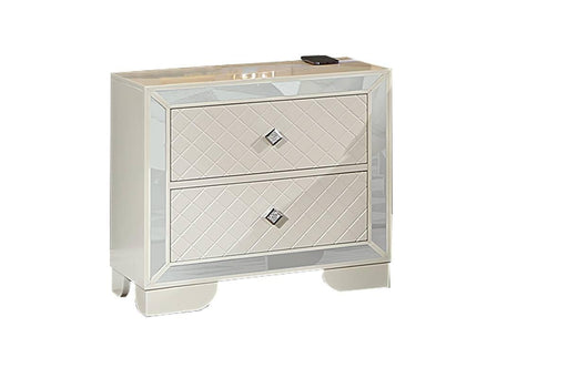 ACME Voeville II Nightstand, Platinum, 22" x 15" x 23"H, 33lbs. Features: - Casegood Drawer: Glide Center Metal, Dovetail French Back Only, Felt-Li...
